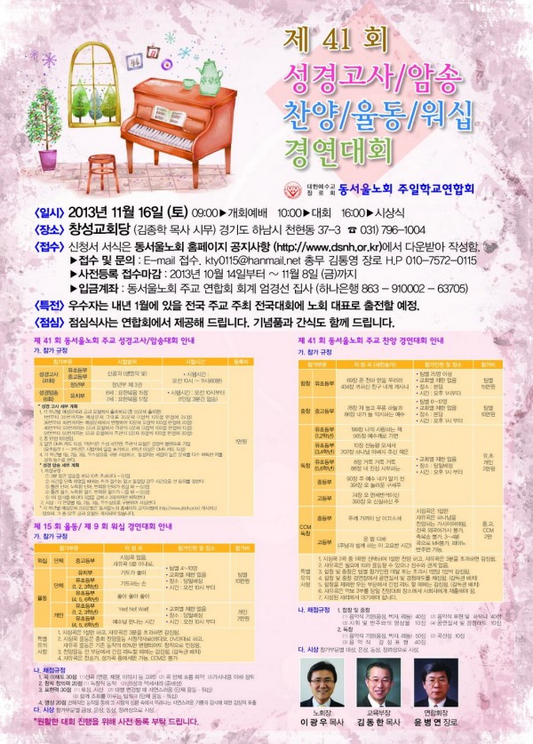 2013년 동서울노회 주일학교 성경고사 및 찬양 율동 워십 경연대회 포스터 입니다.