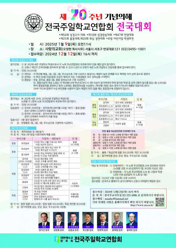 2025년 전국 주일학교 찬양율동, 성경고사, 성경암송대회 안내문