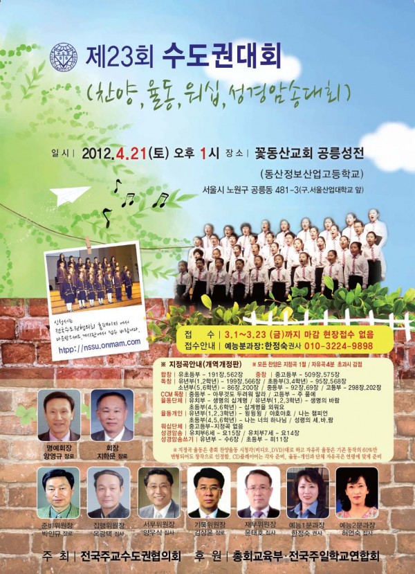 교육부 전국주일학교 수도권협의회 제23회 찬양 율동 워십 성경암송 쓰기 경연대회 안내