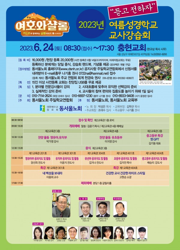 2023년 여름성경학교 및 수련회 교사강습회 안내