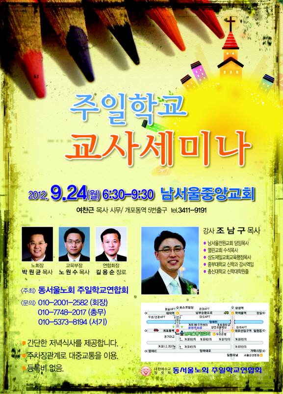 주일학교 연합회에서는 위 건을 위한 행사를 아래 와 같이 개최 하오니 귀 교회 주일학교 교사들 에게 적극 홍보하시고 권면하셔서 많은 참여를 통해 귀 교회 주일학교 에 부흥 발전이 되어지기 를 바랍니다, 아울러 많은 교사들이 필히 참석 할 수 있도록 협력을 간곡히 부탁드립니다.